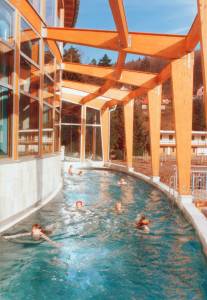 Zwei Innenbecken, zwei Außenbecken, ein Kinderbecken,