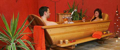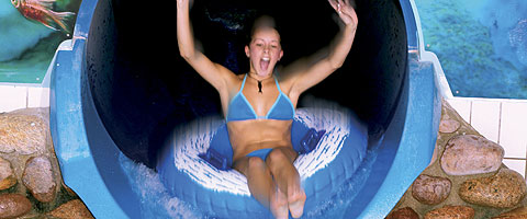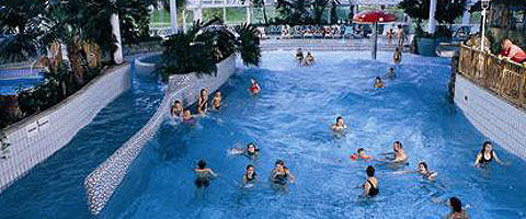 | Sport- und Erlebnisbad mit vielen Attraktionen (28 Grad C), Luft und Wasser Jet Stream, Riesenrutsche mit 103 m Länge, tropischer Regen, Super Karibik Welle, Babypool und Saurierrutsche, Solargrotten, Heißluftsaunen, Niedertemperatursauna (50 Grad C), Römisches Dampfbad, Blockhaussauna, Whirlpool, Tauchbecken, Ganzjahresaußenbecken, Ruheräume, ... |
