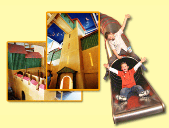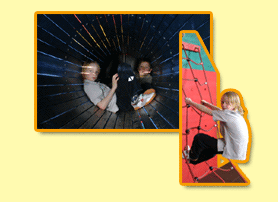 - große Burg - Gänge - Verstecke - Schießscharten - verschieden Kletterelemente - große Röhrenrutsche |
